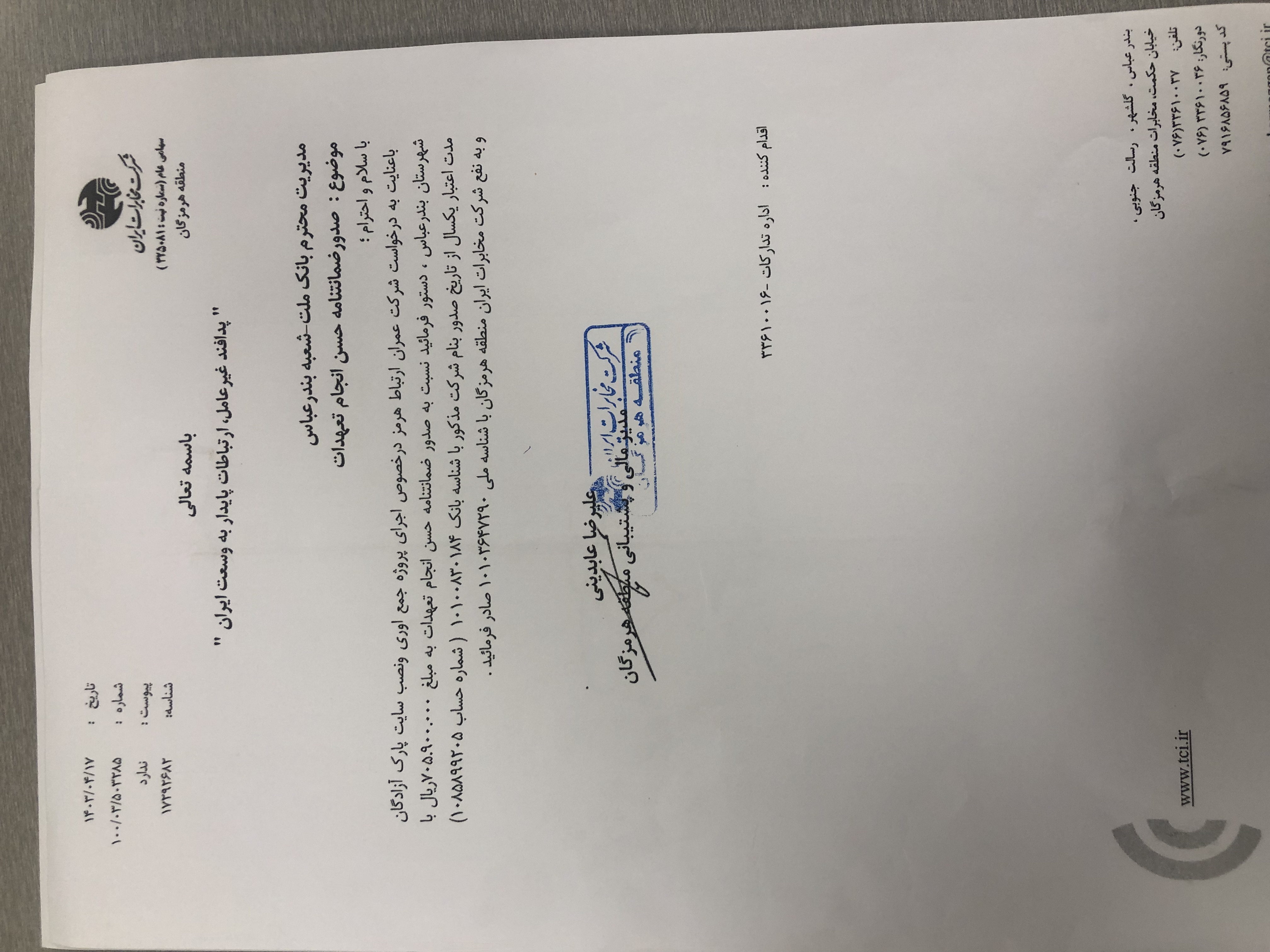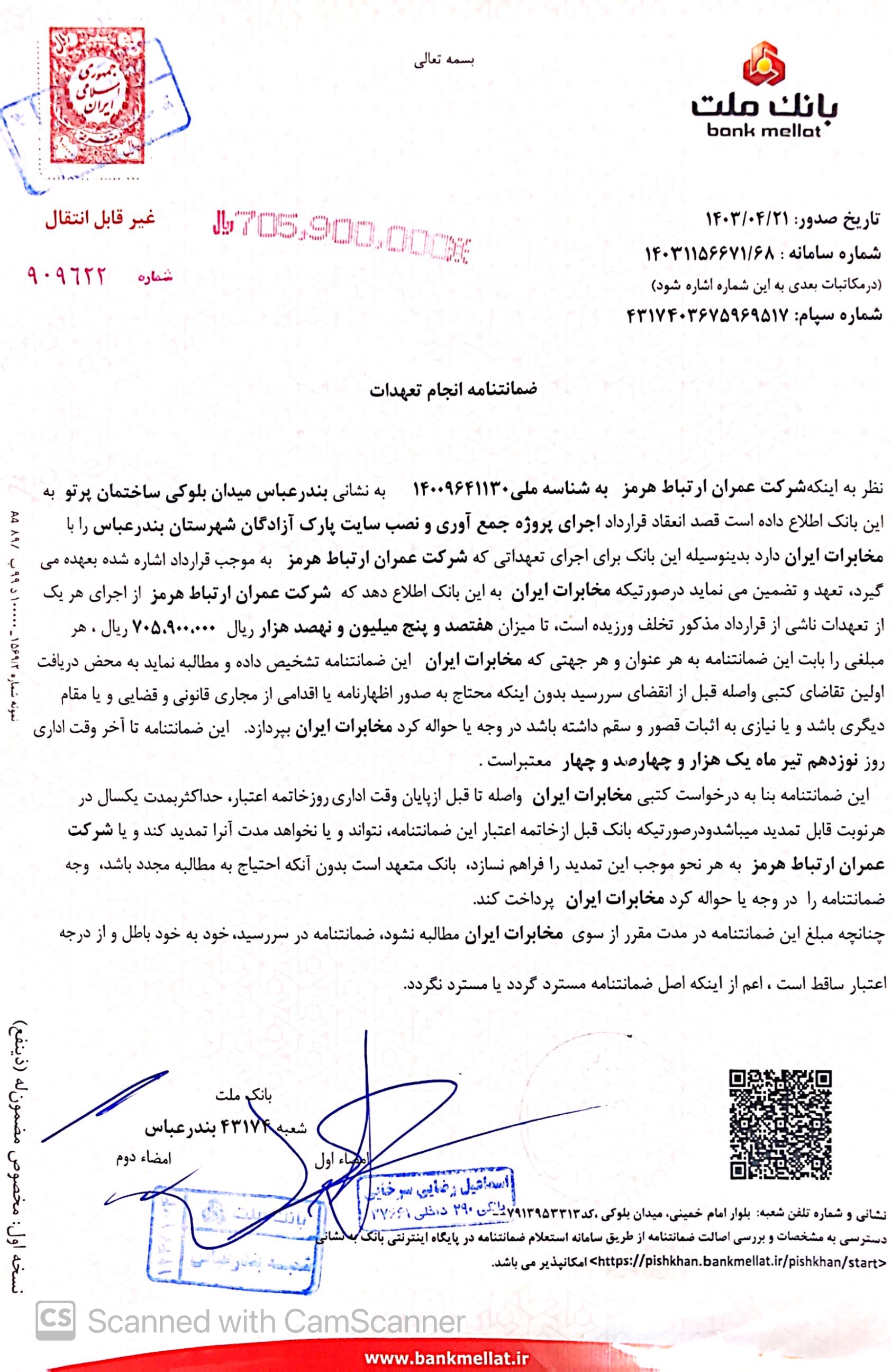 | 5 | صدور ضمانت نامه | ۱۴۰۳/۰۴/۱۹ | ۱۴۰۳/۰۴/۲۵ | ۱۴۰۳/۰۴/۲۱ |