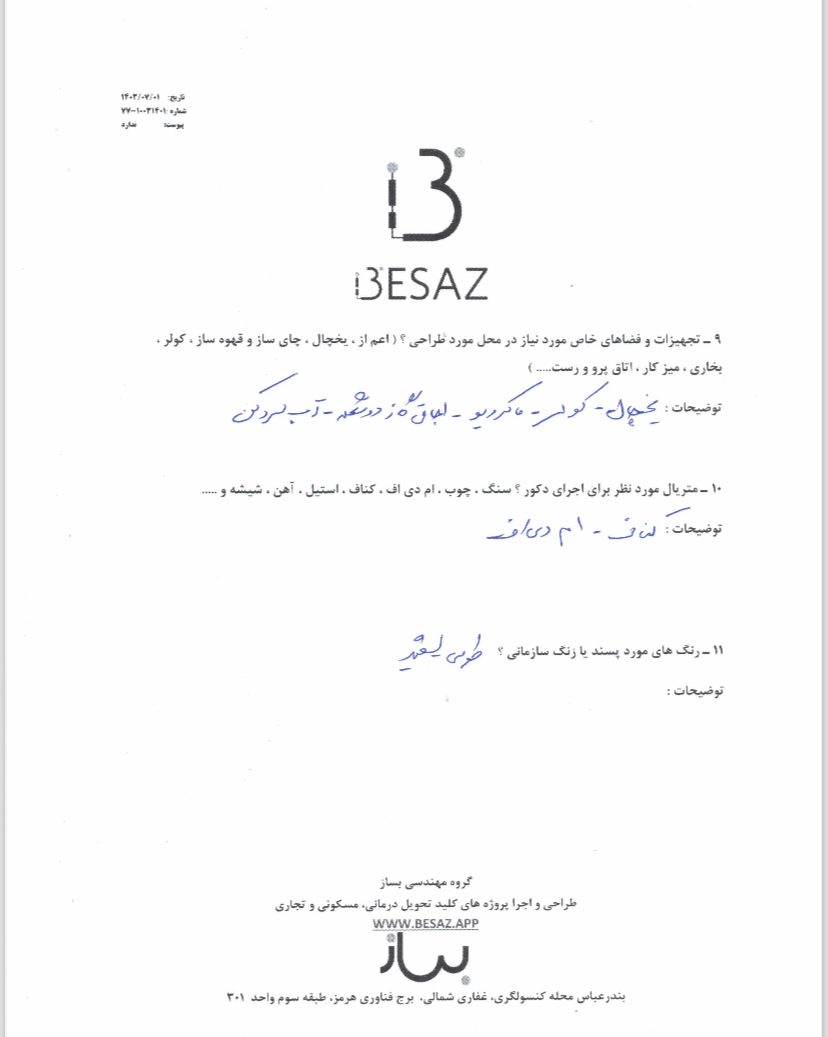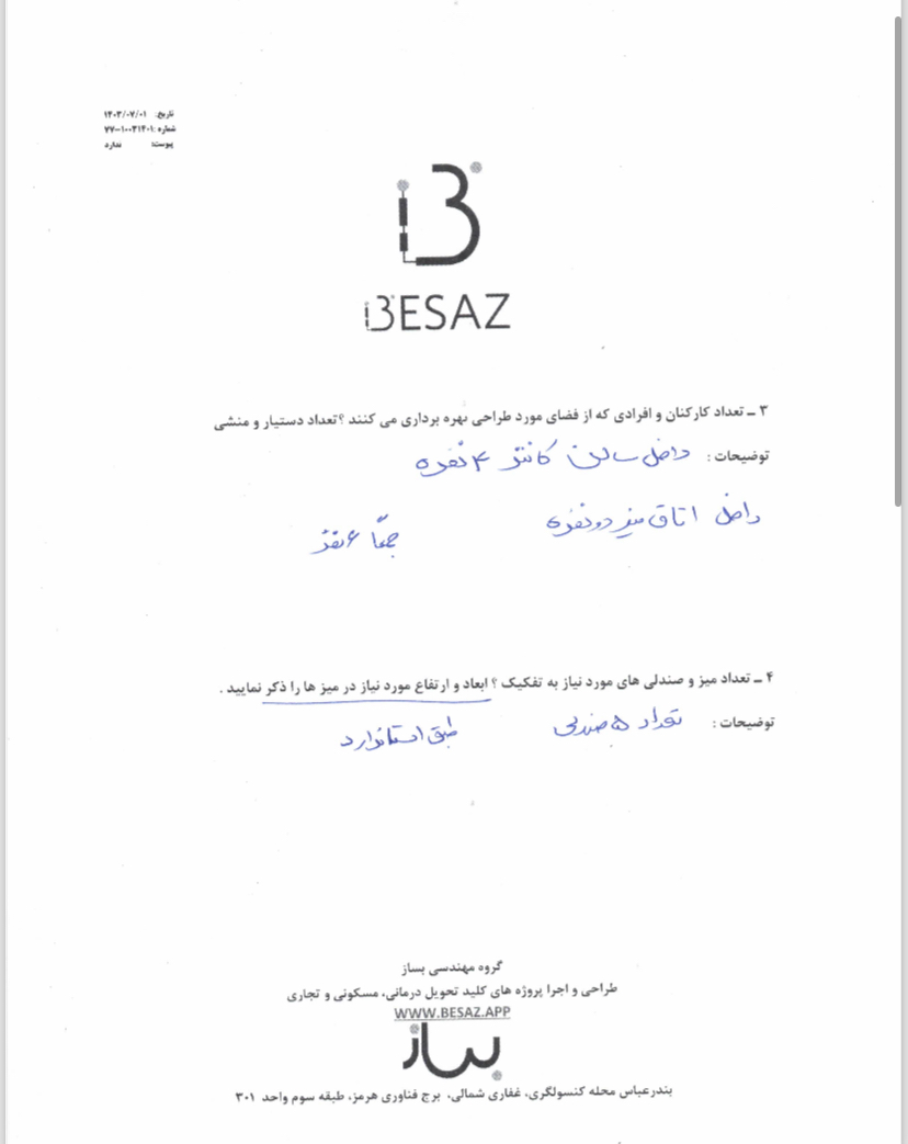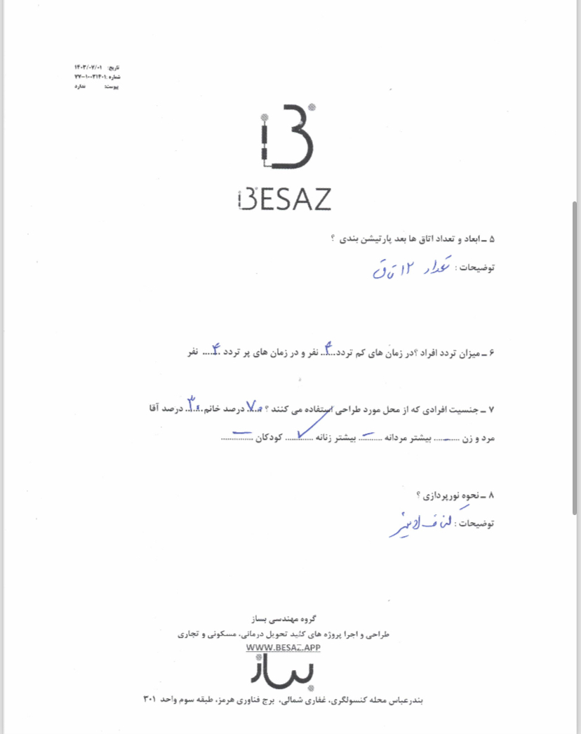 | 1 | بازدید و طراحی | ۱۴۰۳/۰۶/۲۷ | ۱۴۰۳/۰۷/۳۰ | ۱۴۰۳/۰۸/۱۵ |
