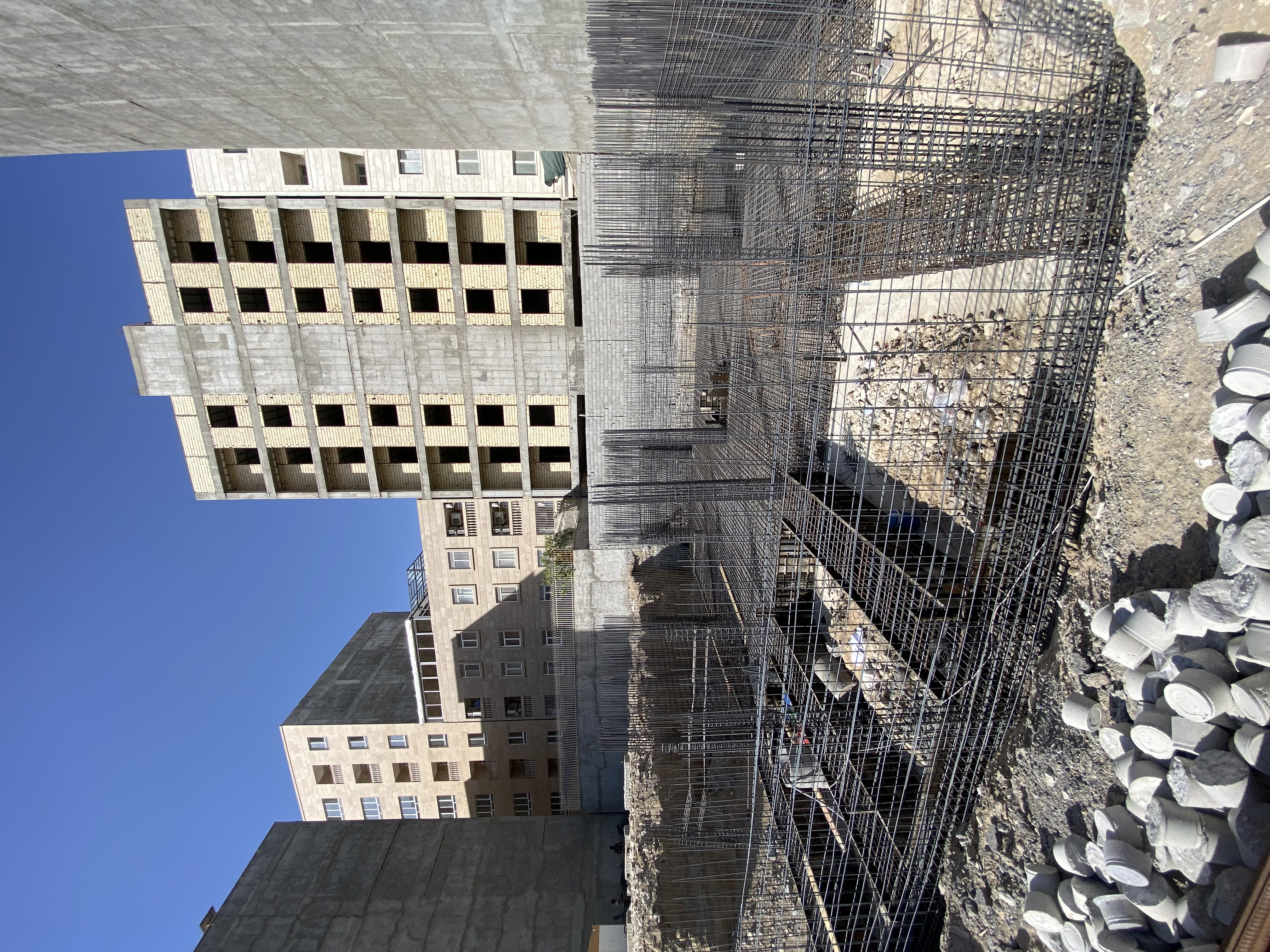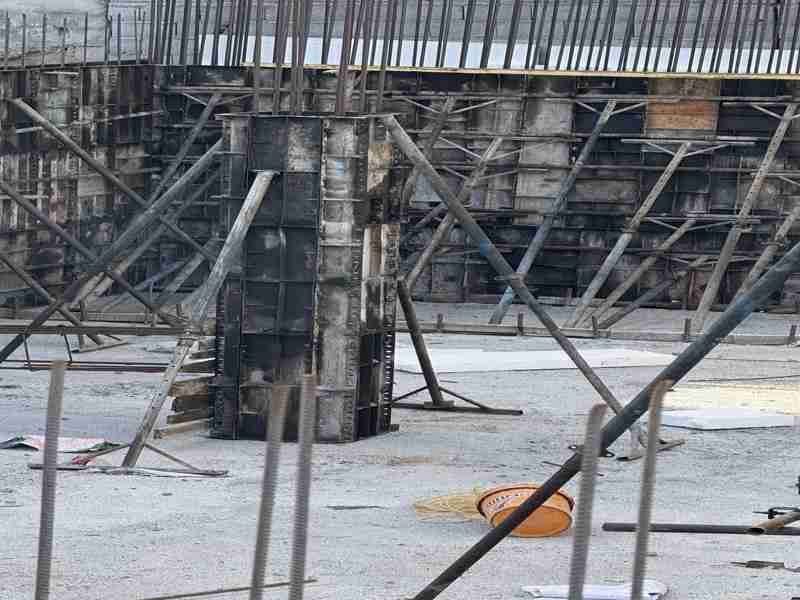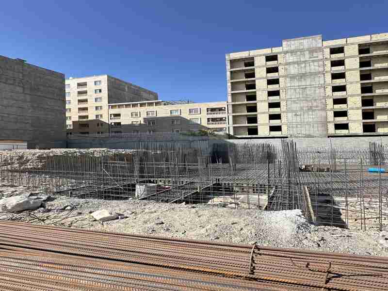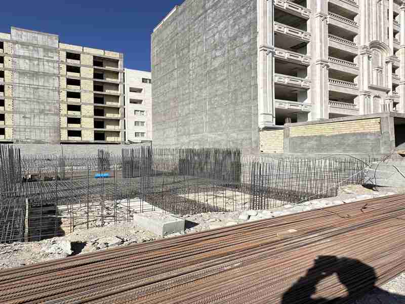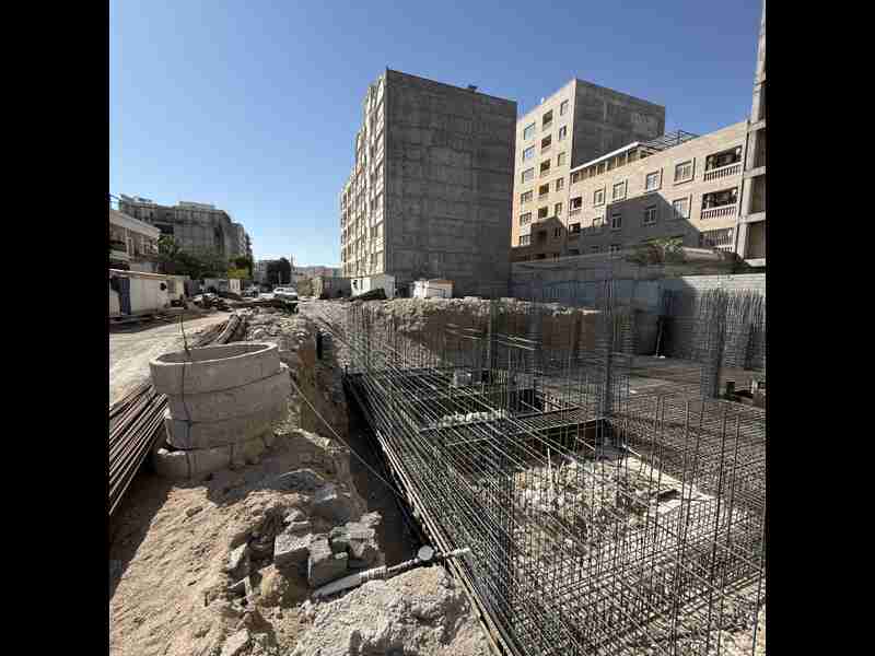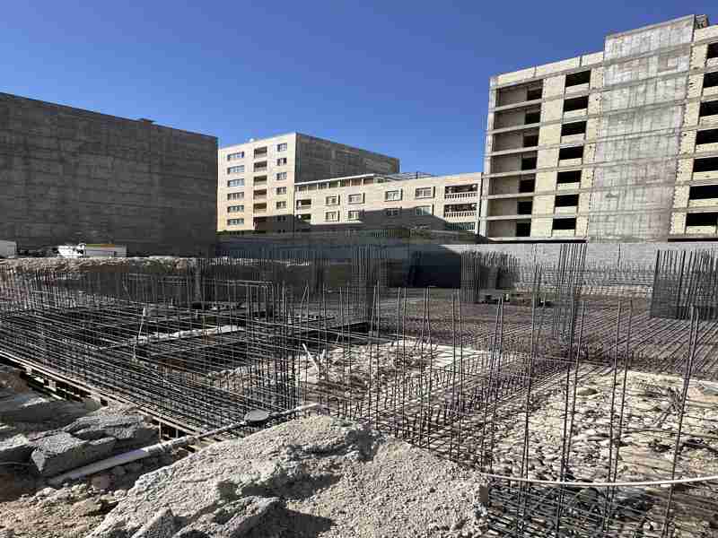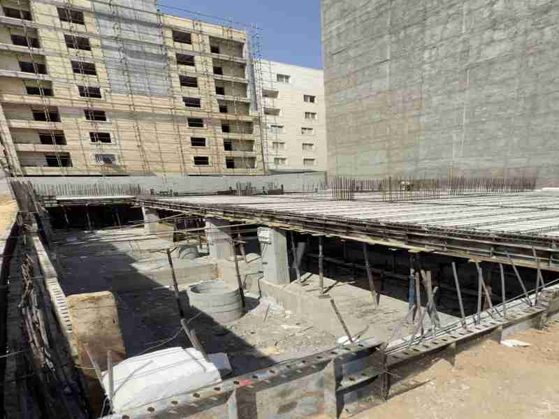 گزارش: آرماتوربندی ستون‌ها و دیوار برشی در حال اجراست. قالب‌های فلزی دیوار و ستون در محل پروژه چیده شد