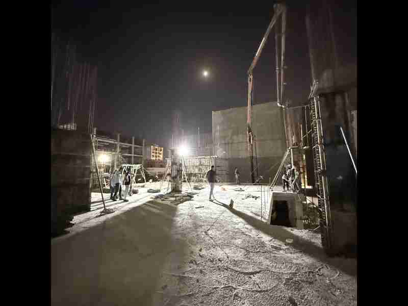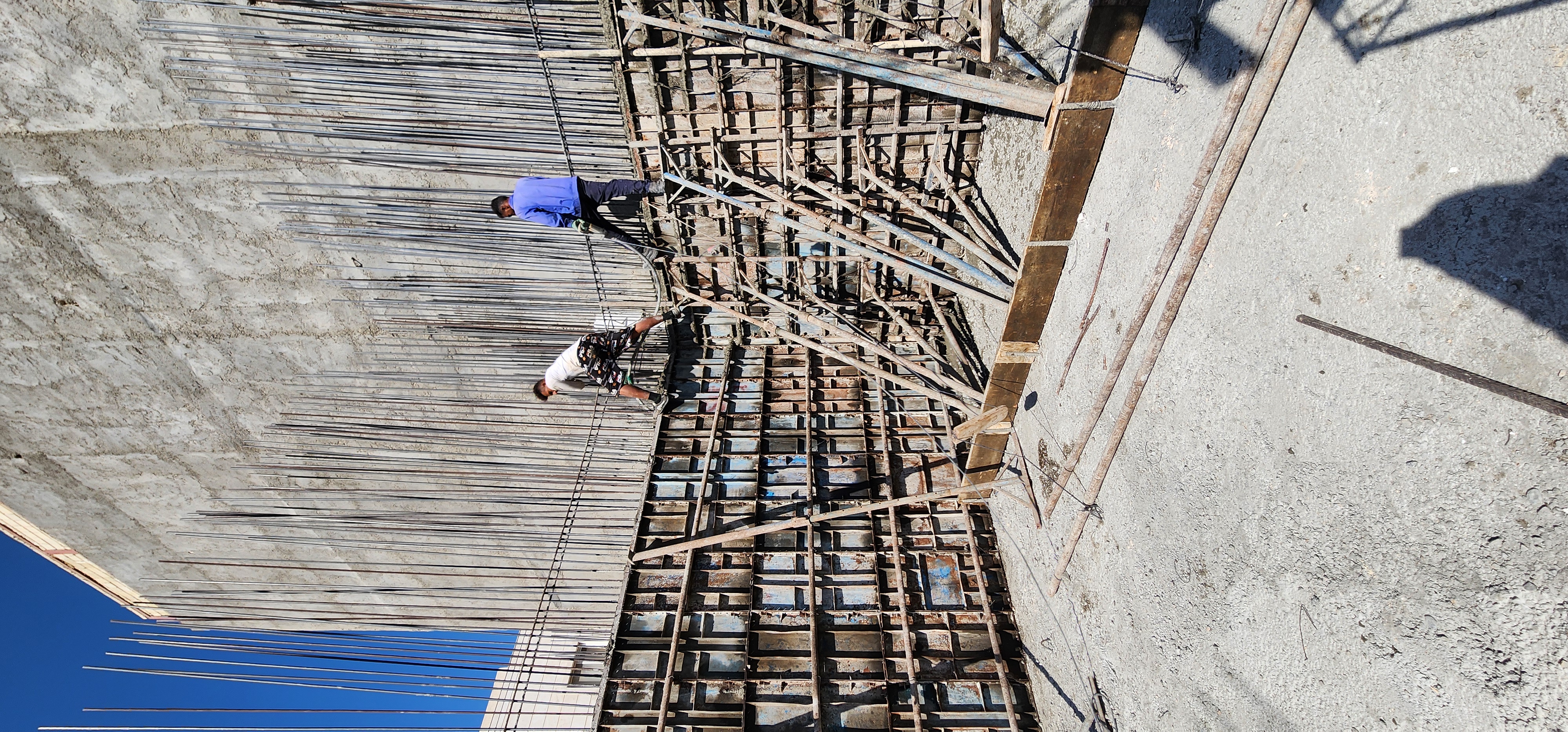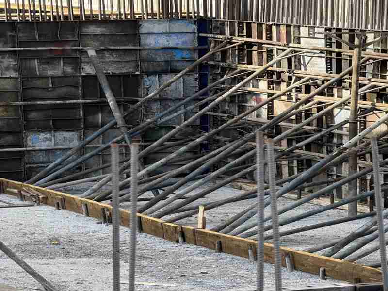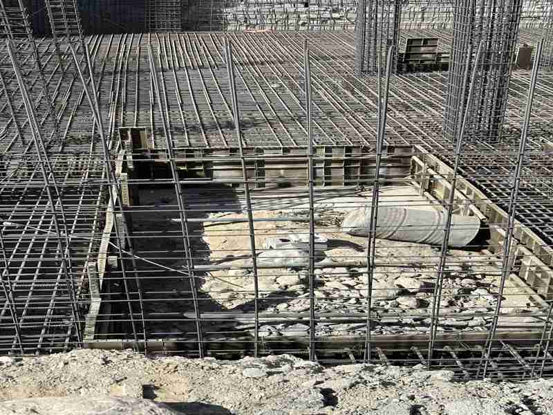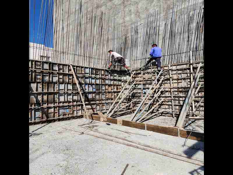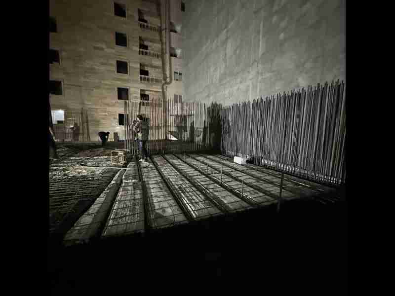 گزارش: آرماتوربندی ستون‌ها و دیوار برشی در حال اجراست. قالب‌های فلزی دیوار و ستون در محل پروژه چیده شد